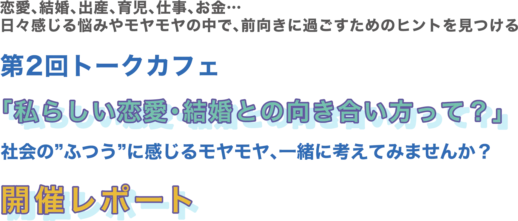 協力団体に「株式会社TIEWA」から合田文さんほか4名のファシリテーターを迎え、恋愛や結婚について感じているモヤモヤや価値観、周りとの心地の良い距離感の作り方について、グループトークをしながら一緒に考えてみました。