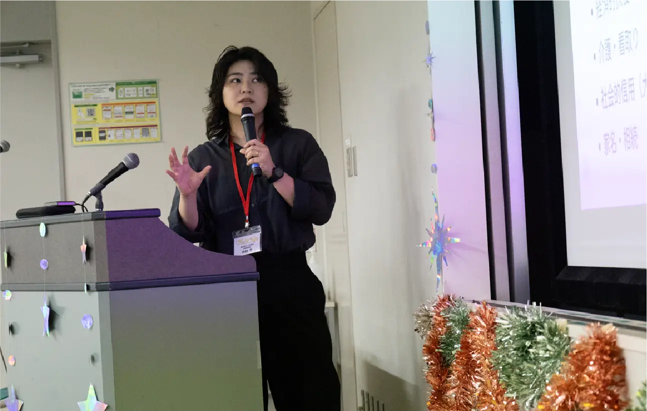 「集合写真を撮ったときのことを思い出してみてください。結構みんな、自分の顔しか見ていなかったりしませんか?そう考えると、私のことを思うほど気にしてる人って、実はそんなにいないかもと思うようになったんです。『こう思われたら、こう言われたらどうしよう』と社会の規範を気にしたり、自分を責めてしまったりすることもあると思います。そんな社会が少しずつ変わっていくことと同時に、ご自身の本当の気持ちや意思と向き合って、大切にできる時間が皆さんの中で少しでも増えたらと思います。」と合田さんはプログラムを締めくくりました。