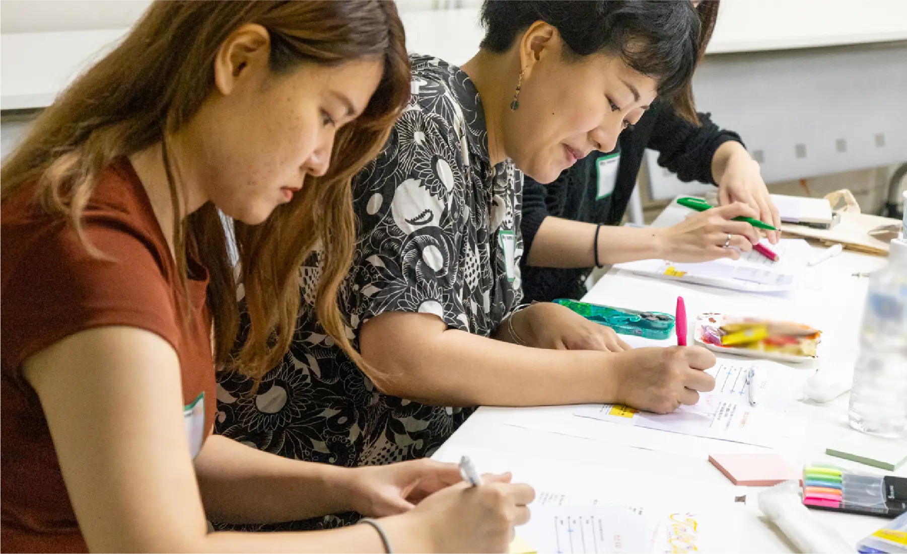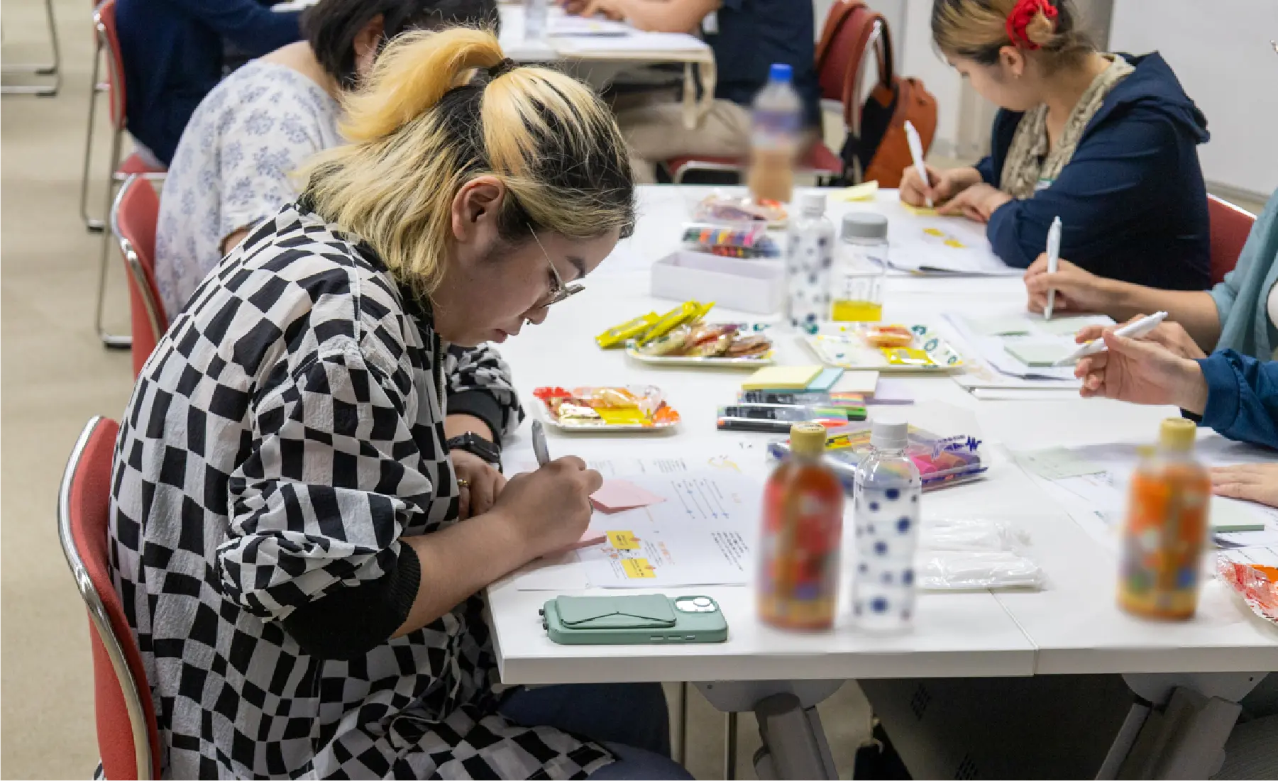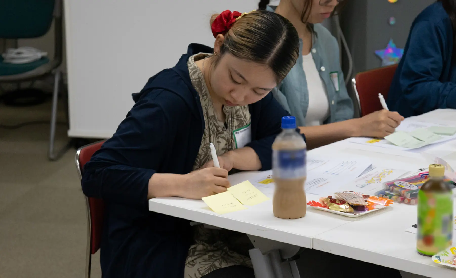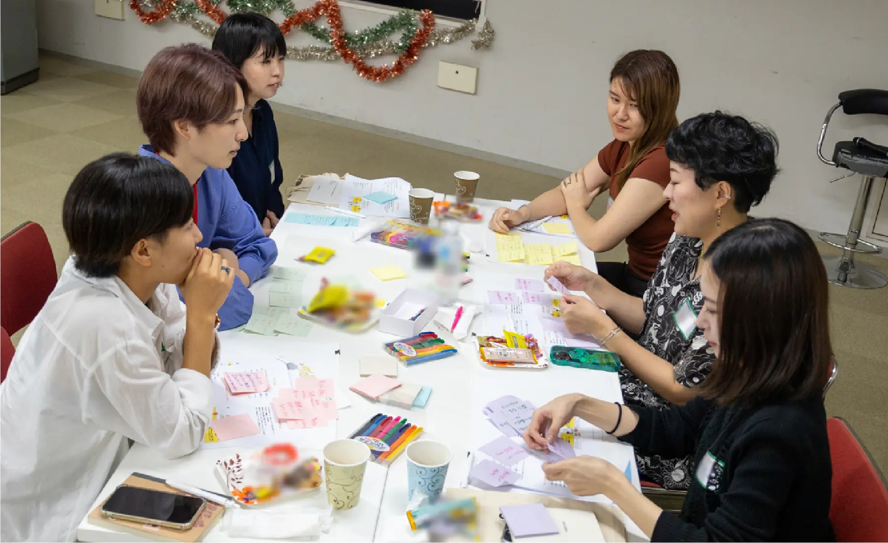 テーブルごとのファシリテーターが、順番に参加者に話題を振ることで全員がお話しできるようにし、テーブルのみんなで一緒に考えました。