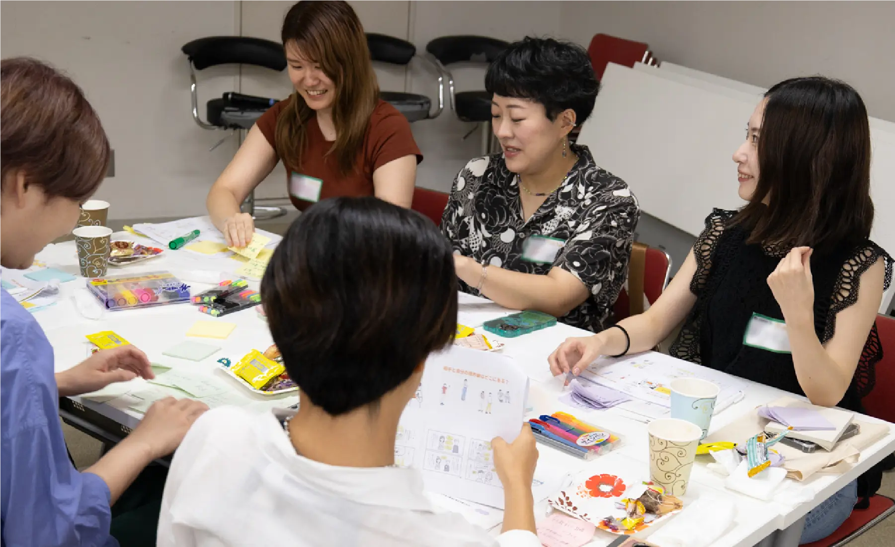多くの参加者が終了後もそのままテーブルに残り、ファシリテーターと話し込んでいる様子が見られました。終了後に行ったアンケートでは、「同じような悩みを持つ人がいると知り心強かった」という回答が複数あり、参加したことで得られた共感や「居心地よく安心して話せた」「普段話せないことを話せる貴重な場」など、会場の雰囲気の良さが伺える回答も複数ありました。また「自分の意見と違う考えや立場の人の意見を聞けた」などグループセッションによる学びも多かったことが感じられました。